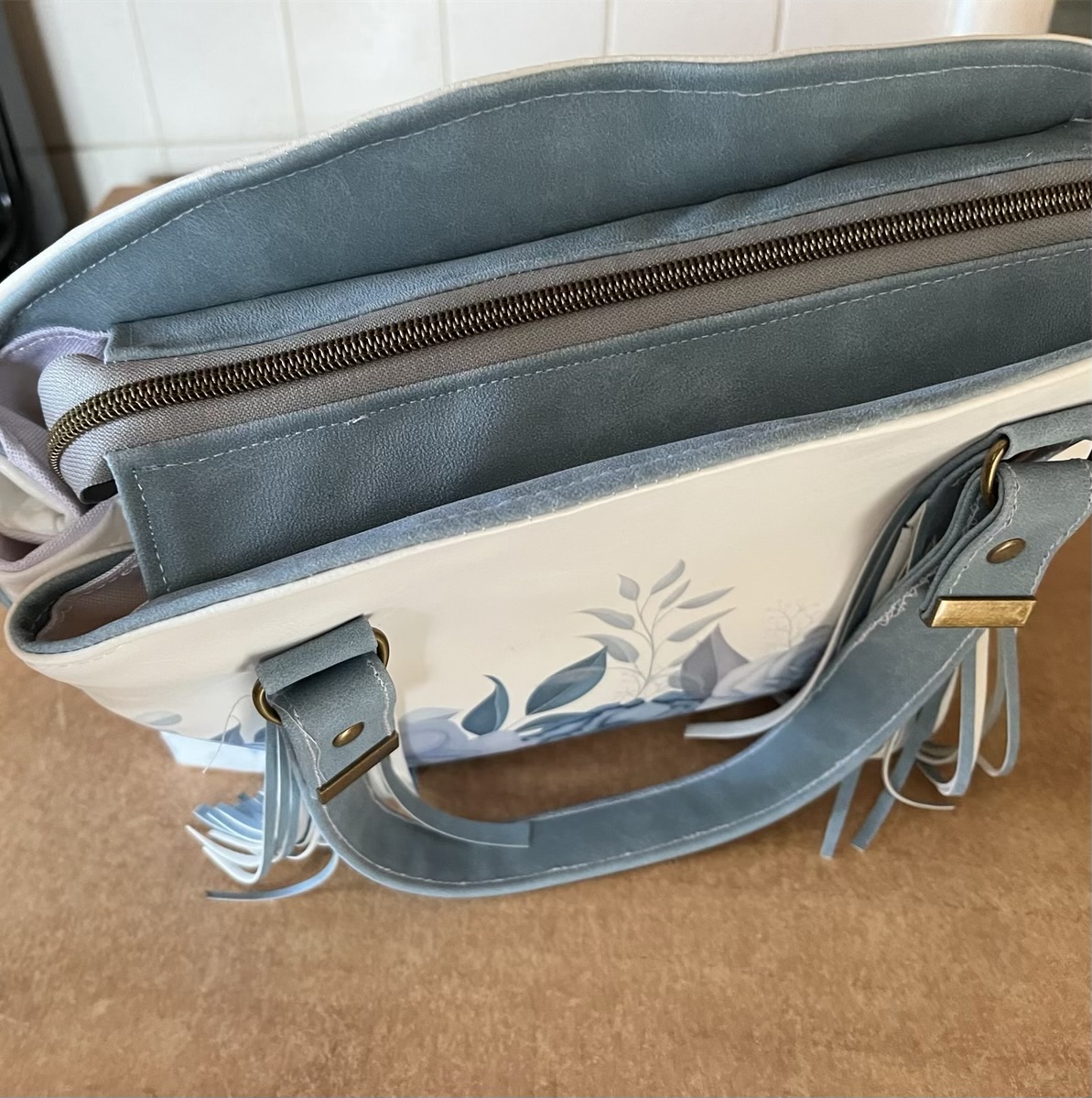This wonderful bag was custom made for a woman who has always wanted a purse with white lining so she could see inside. But you can choose to have one of your own in any color combination.